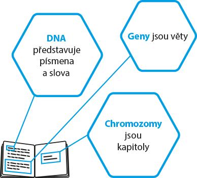 Buňka si proto „přečte“ DNA, kde tyto instrukce najde. Gen je část DNA, která programuje jednu konkrétní instrukci. Samotné geny jsou seskupeny do samostatných jednotek zvaných chromozomy.